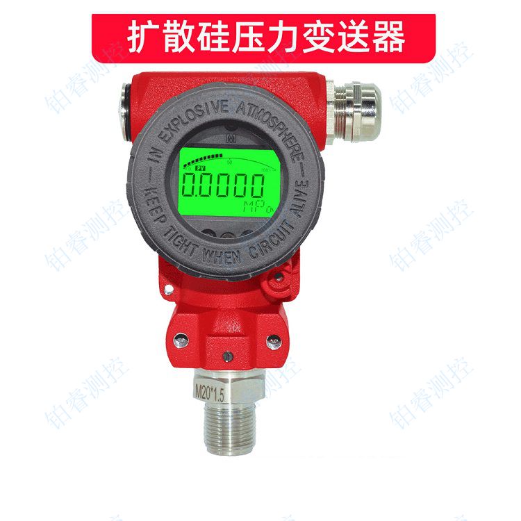 智能压力变送器 扩散硅压力变送器(液晶显示) 产品时间:2021-05-29 简要描述: 扩散硅压力变送器 本产品广泛用于石油、海洋、水库、河流、化工、冶金、电力、科研等企事业单位,实现对流体压力的测量,并适用于各种场合全天候环境及各种腐蚀性流体。 工作... 在线咨询 产品详情 扩散硅压力变送器 本产品广泛用于石油、海洋、水库、河流、化工、冶金、电力、科研等企事业单位,实现对流体压力的测量,并适用于各种场合全天候环境及各种腐蚀性流体。 工作原理: 过程压力通过压力传感器将压力信号转换成电信号,经差分放大器、输出放大器放大后,再经V/A转换器的转换,转换为与输入压力成线性对应关系的(4~20)mA标准电流输出信号。 扩散硅压力变送器选用平面膜直接感受压力,采用专用集成模块,经过精细的温漂、零点、非线性补偿,实现对气体、液体准确测量和传送。整机经过严格组装和测试,该产品具有设计原理先进、品种规格齐全、安装使用简便等特点。由于该机型外观上完全融合了目前国内*为流行,为适合国内自动化水平的不断提高和发展,该系列产品除设计小巧精致外,更推出具有HART现场总线协议的智能化功能。 ●准确度高、稳定性好。除进口原装传感器已用激光修正外,还对整机在使用温度范围内的综合性温度漂移、非线性进行精细地补偿,因此在使用温度范围内非线性小,温度稳定性好。 ●可靠的机械保护IP65和防爆保护iaⅡCT5,可用于各种恶劣环境。 ●可用于测量粘稠、结晶和腐蚀性介质。 ●4~20mA DC标准电流信号输出,二线制工作,带负载抗干扰能力强。 ●体积小、重量轻,安装、调试、维护、使用方便。 ●选用高品质的传感器和专用V/I集成电路,外围器件少,可靠性高,维护简单轻松。 ●专用HART智能通讯,性能更加优越。 ●在线按键组态功能。 安装事项 1、小于0.03MPa垂直安装、以免影响测量精度; 2、安装过程中应使用扳手从变送器底部的六方螺帽处将变送器拧紧,避免直接旋动变送器上部进而造成连接线断开; 无锡铂睿测控仪表有限公司是专业研发、生产流量,温度,压力,液位测控仪表厂家, 温度仪表高新技术企业,守合同重信用单位,可根据客户要求订制产品,品质放心有保障,欢迎来电咨询产品价格!更多产品请浏览公司主页www.wxbrck.com。